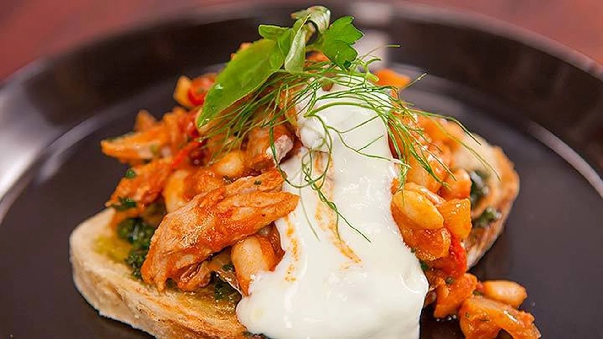 Duck and beans with herbed Sourdough and Yoghurt